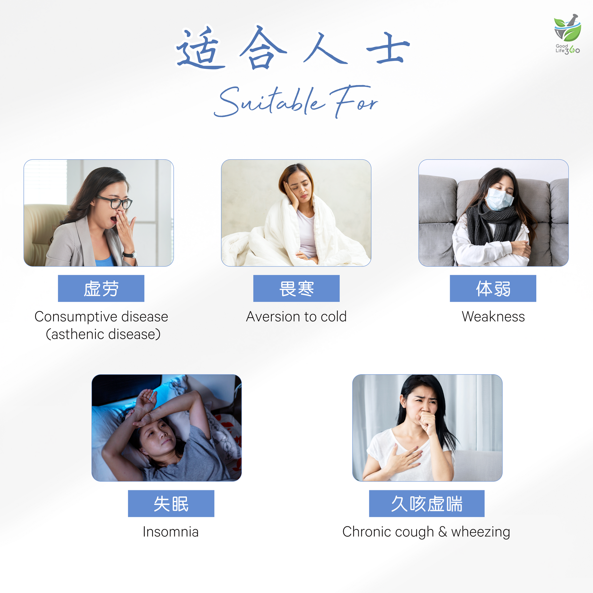 畏寒、虚劳、体弱、失眠、久咳虚喘