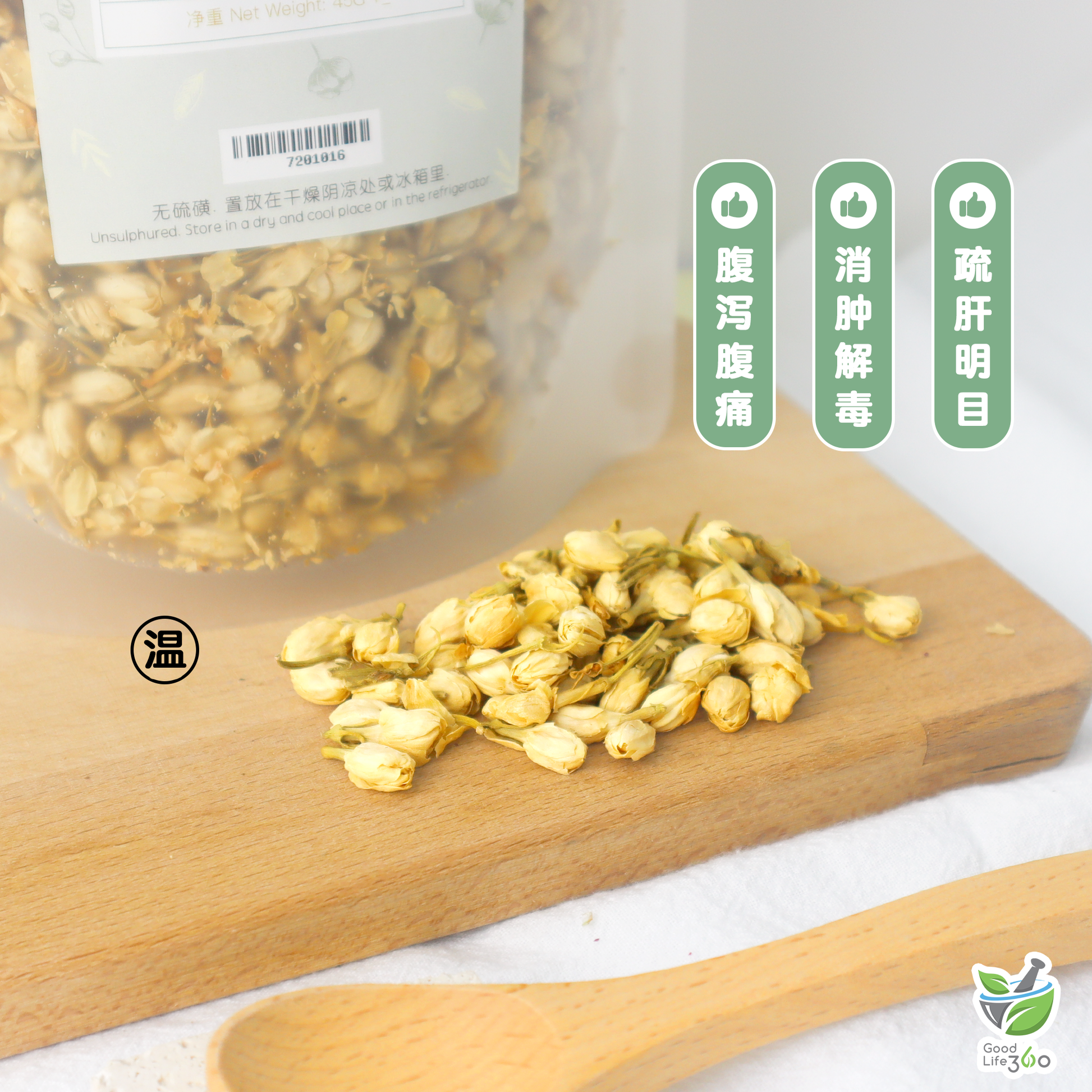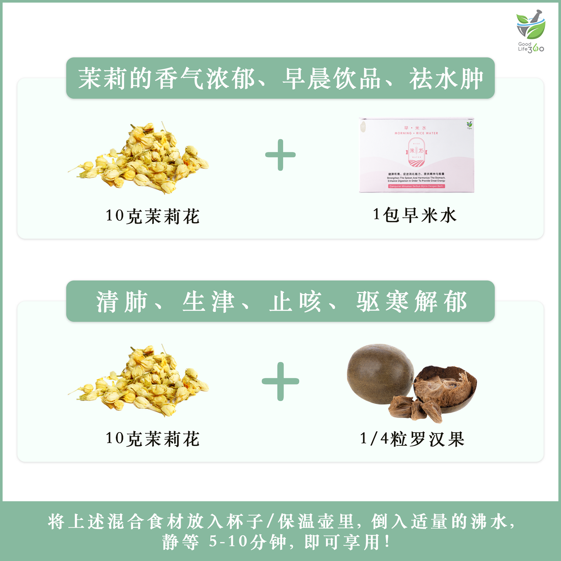 完美融合了茉莉花和罗汉果的双重功效,更健康,具有清肺、生津、止咳、疏肝理气,驱寒解郁功效,适合久坐的办公白领。