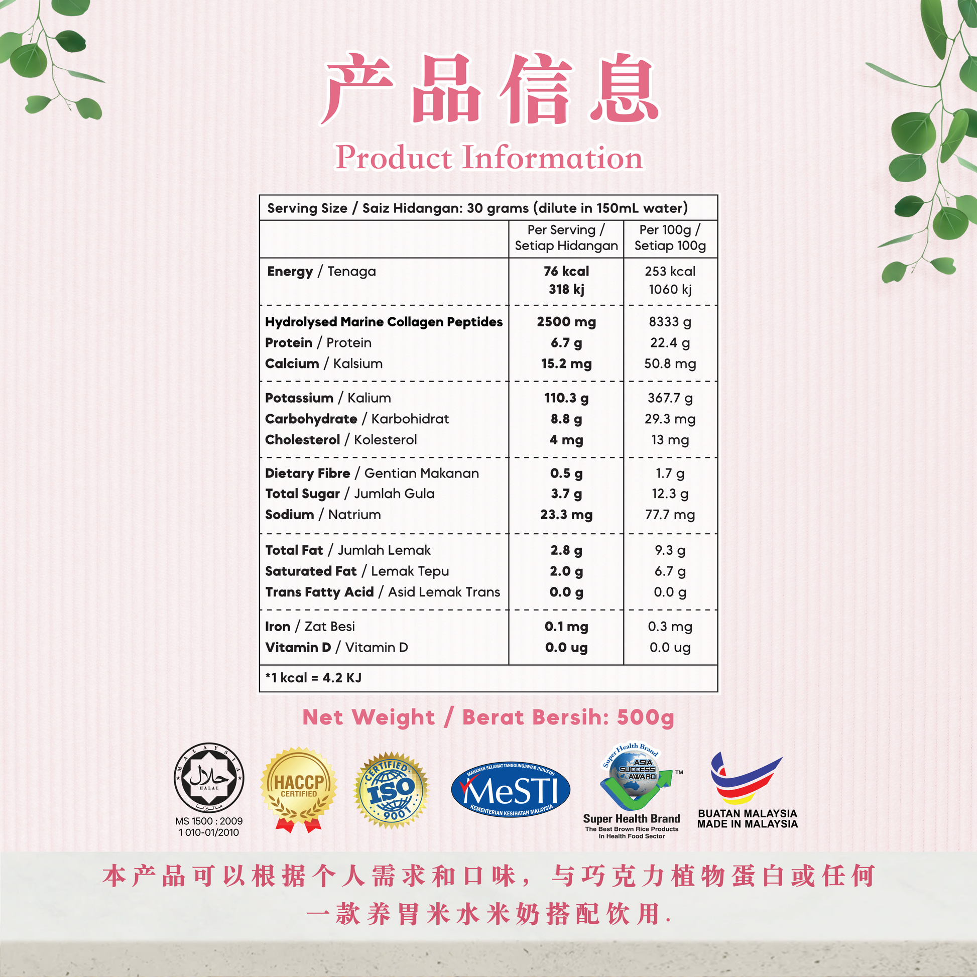 胶原蛋白肽牛奶 COLLAGEN PEPTIDES MILK (500 GRAMS)